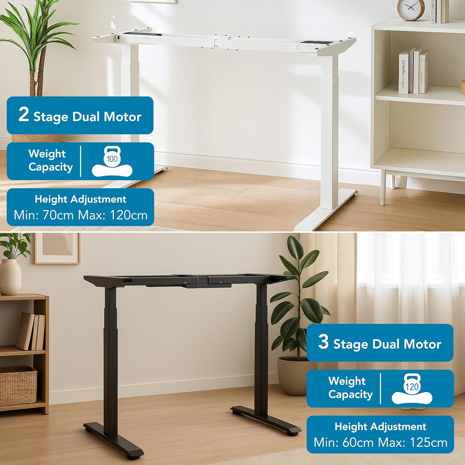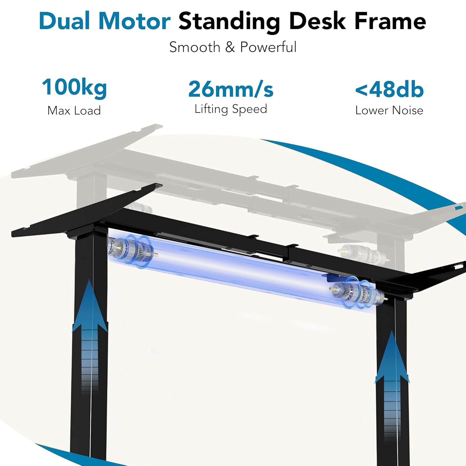 Dual Motor Height Adjustable Telescopic Desk Frame | 100 kg Capacity | Support Upto 180cm x75cm Table top with Anti-Collision Safety, Low Noise Motors | 2 Years Warranty