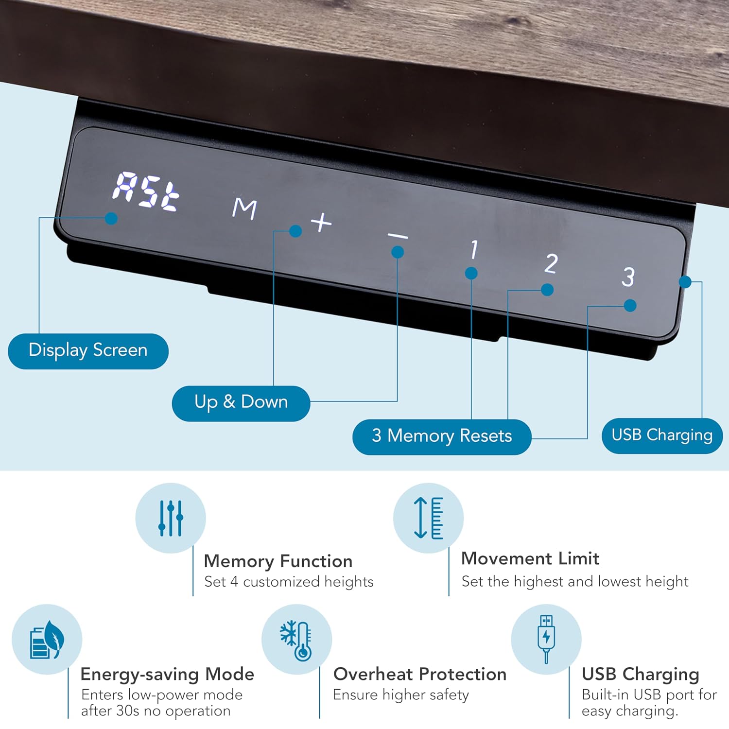 πΎ 3 Memory Presets for Seamless Daily Transitions with USB Chargig Program perfect heights for sitting, standing, and even specific tasks like drawing or presentations. Switch between them with a single button press.