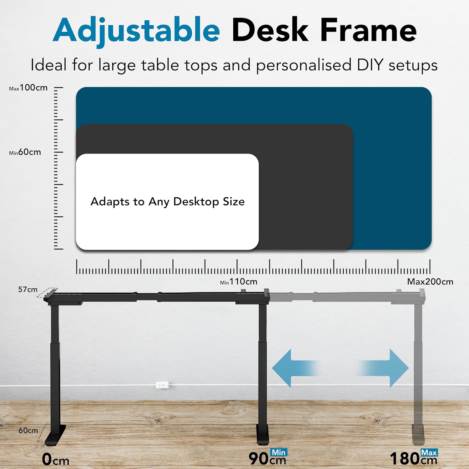 π οΈ Fits Custom Tabletops (120-180cm) β Build your dream desk! This universal frame supports your own choice of top, from a compact 120cm to a spacious 180cm L-shaped setup.